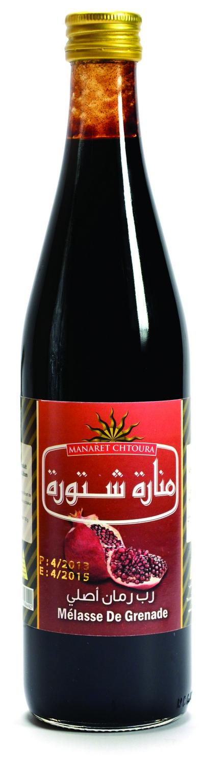 ManaretChtaura Grenade Molasses is a thick dark-brown syrup made from a tart variety of fresh grenade. This ingredient is usually used to add a delicious flavor to any kind of food. Although no sugar added, the stringent sweetness comes from the natural sugar in the fruit, which makes it a healthy dish or drink additive.