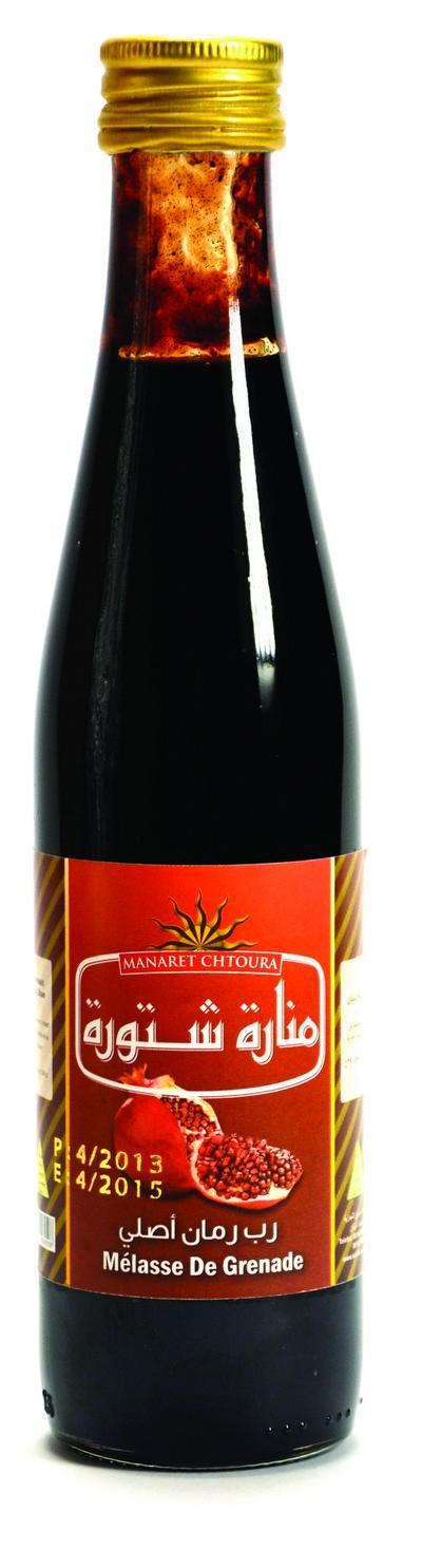 ManaretChtaura Grenade Molasses is a thick dark-brown syrup made from a tart variety of fresh grenade. This ingredient is usually used to add a delicious flavor to any kind of food. Although no sugar added, the stringent sweetness comes from the natural sugar in the fruit, which makes it a healthy dish or drink additive.